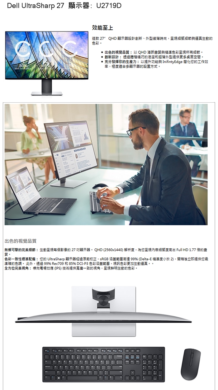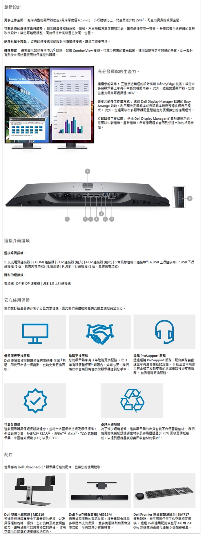 DELL U2719D(1H1P/5ms/IPS/無喇叭)超薄邊框.可旋轉.保無亮點.廣色域