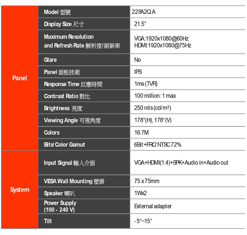 AOPEN 22SA2Q A(1A1H/1ms/IPS/含喇叭)濾藍光.超薄機身