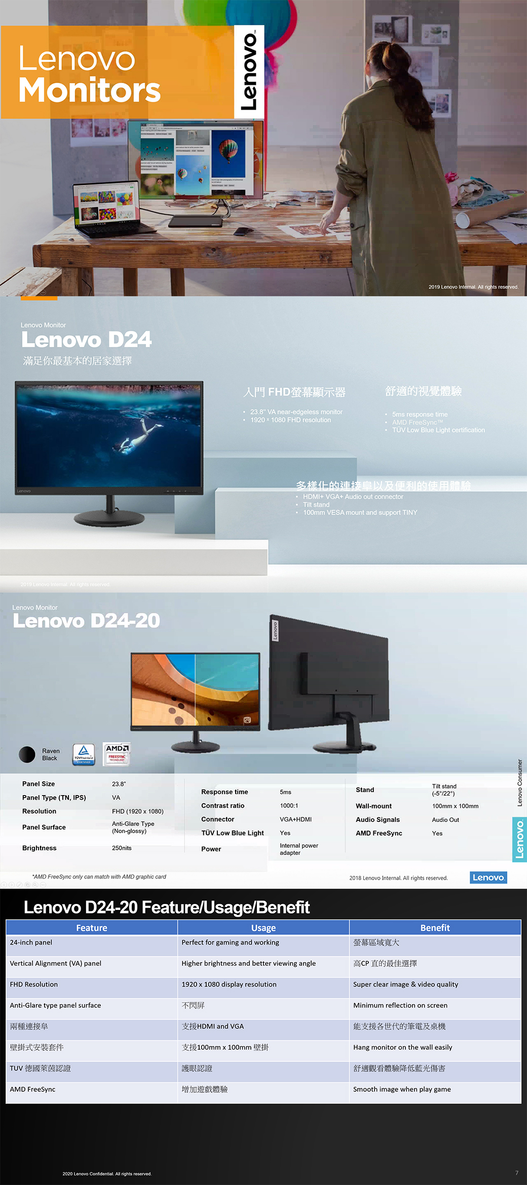 Lenovo D24-20(1A1H/5ms/VA/無喇叭) 24吋入門款.超低優惠
