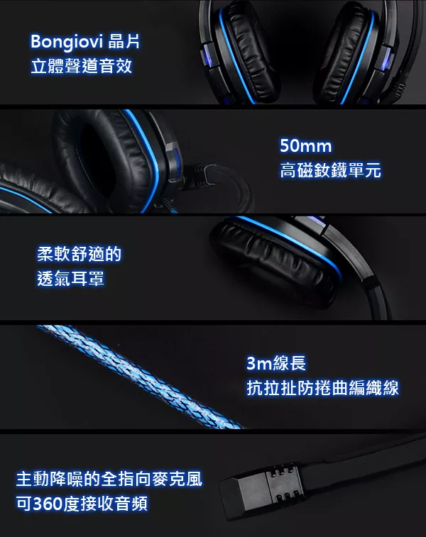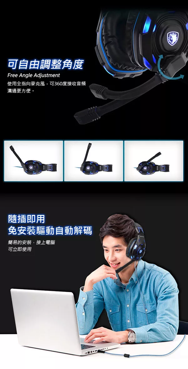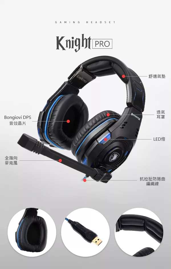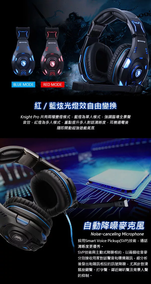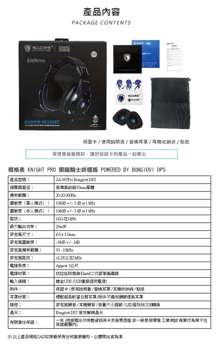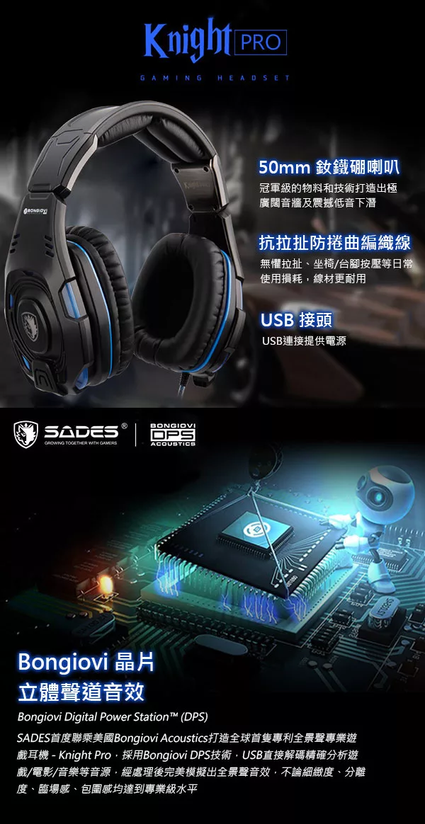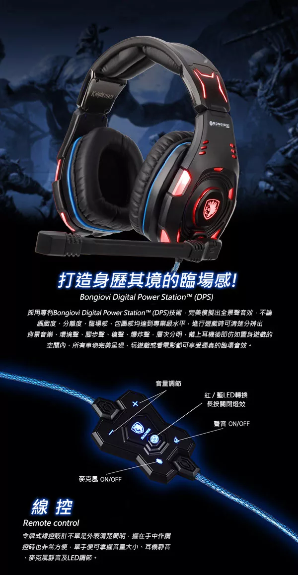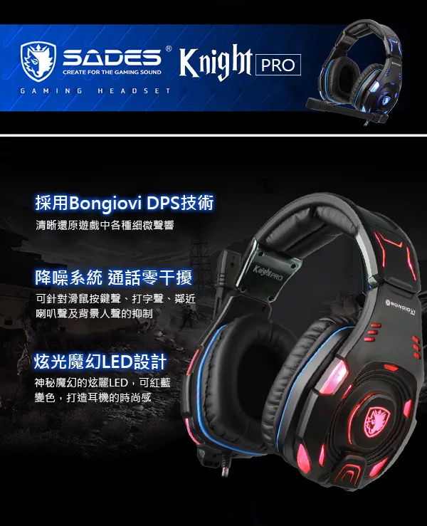 商品內容 SADES KNIGHT PRO 黑暗騎士終極版 POWERED BY BONGIOVI DPS 電競耳麥 (USB) 一個