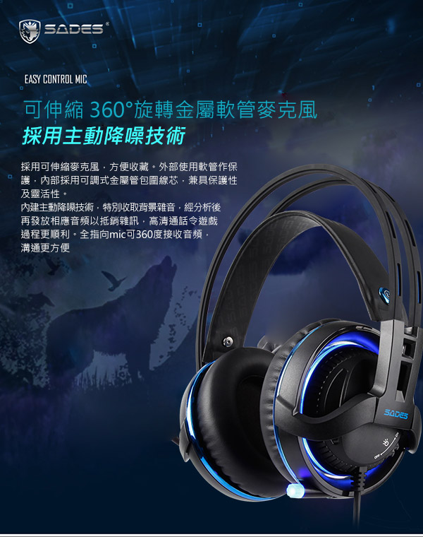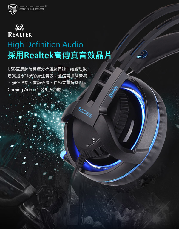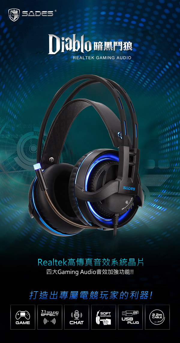 SADES DIABLO 暗黑鬥狼【SA-916】電競耳麥/有線/USB/瑞昱7.1/RGB