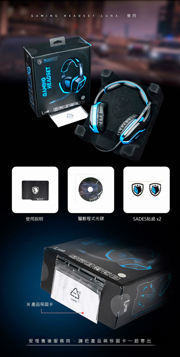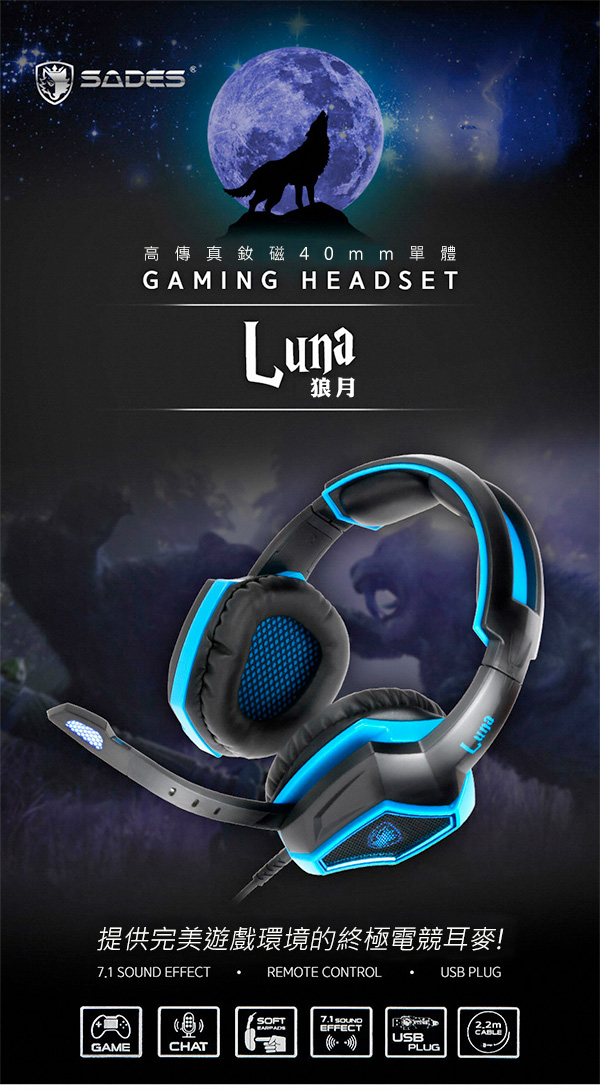 • SADES 賽德斯 LUNA 狼月 電競耳麥 7.1 (USB)