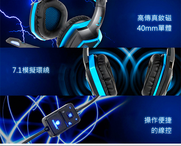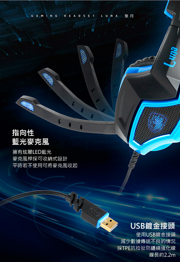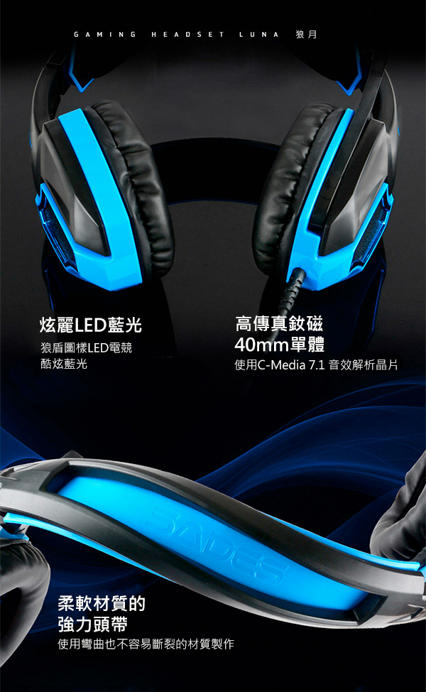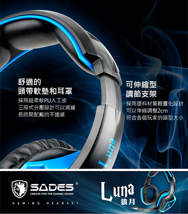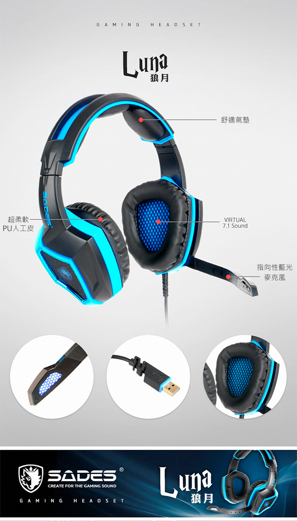 SADES LUNA 狼月【SA-968】電競耳麥/有線/模擬7.1/USB