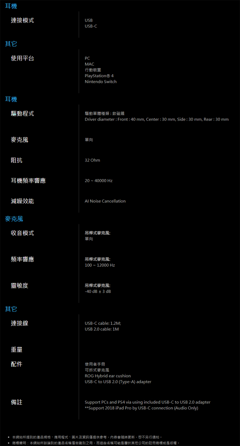 華碩 ROG Theta Electret 電競耳機/有線/靜電單體與釹磁動雙單體架構/Hi-Fi等級鍍銀銅線