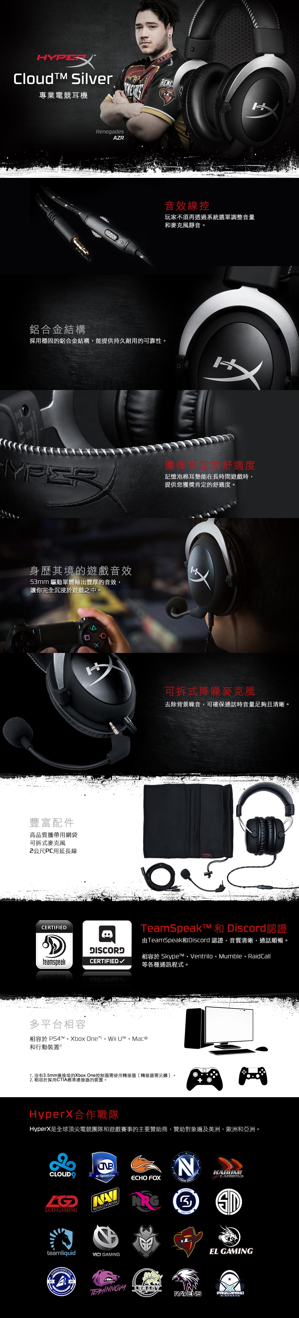金士頓 HyperX Cloud Silver 電競耳麥(黑)/有線