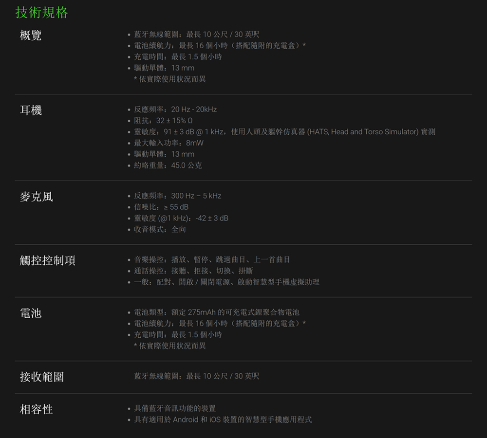 • Razer Hammerhead True Wireless 戰錘狂鯊真無線耳機