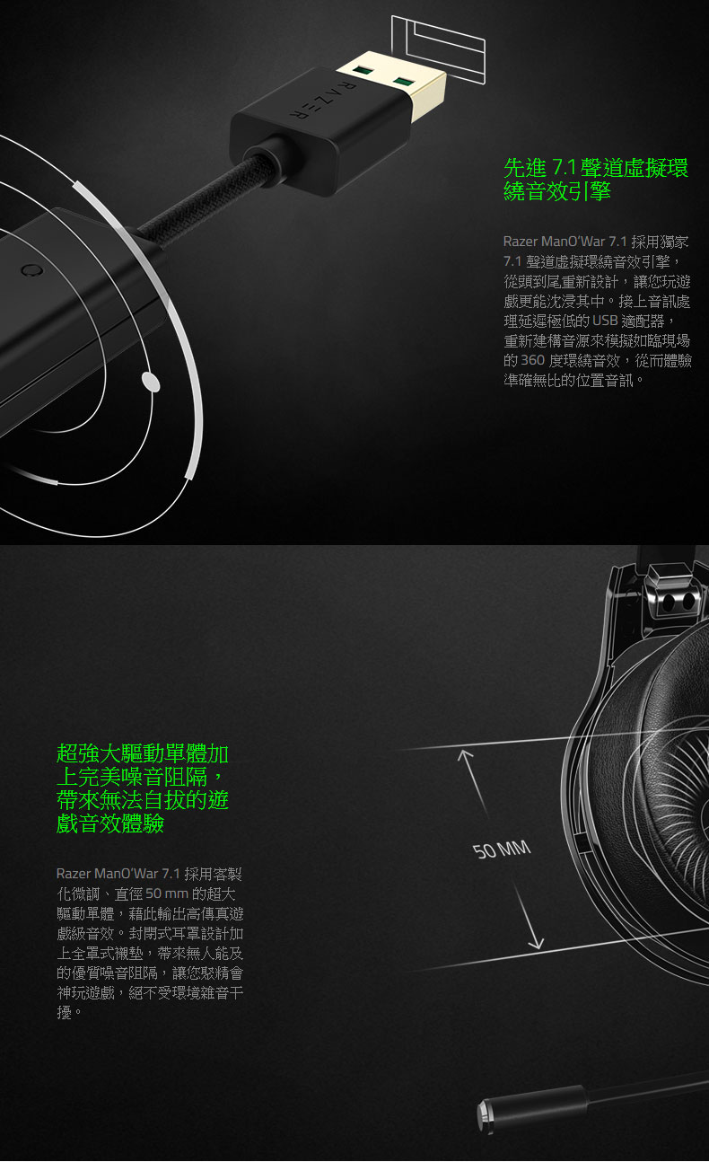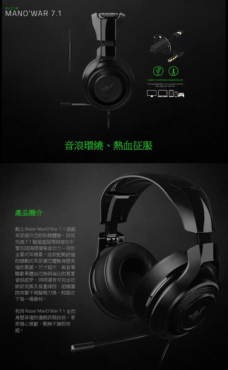 RAZER 雷蛇 MANOWAR戰神 7.1 耳機 綠