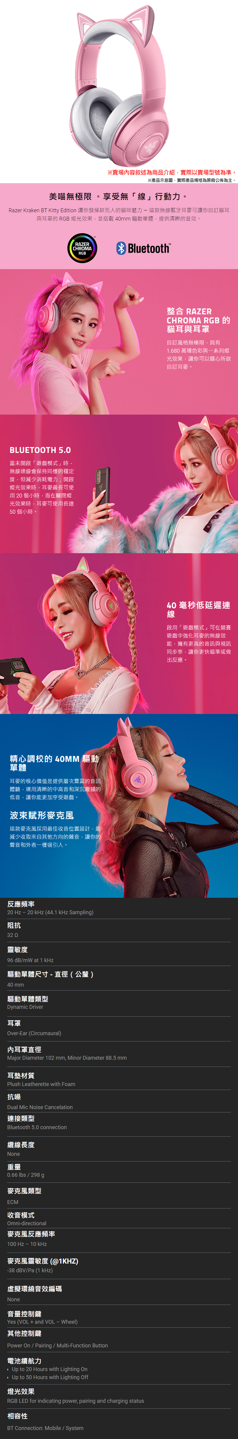 • Razer Kraken BT Kitty Quartz 北海巨妖 粉晶發光貓耳