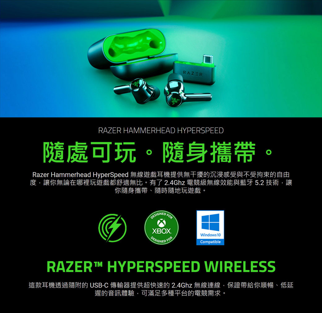 Razer Hammerhead HyperSpeed 真無線電競耳機/藍芽/入耳式/XBOX認證