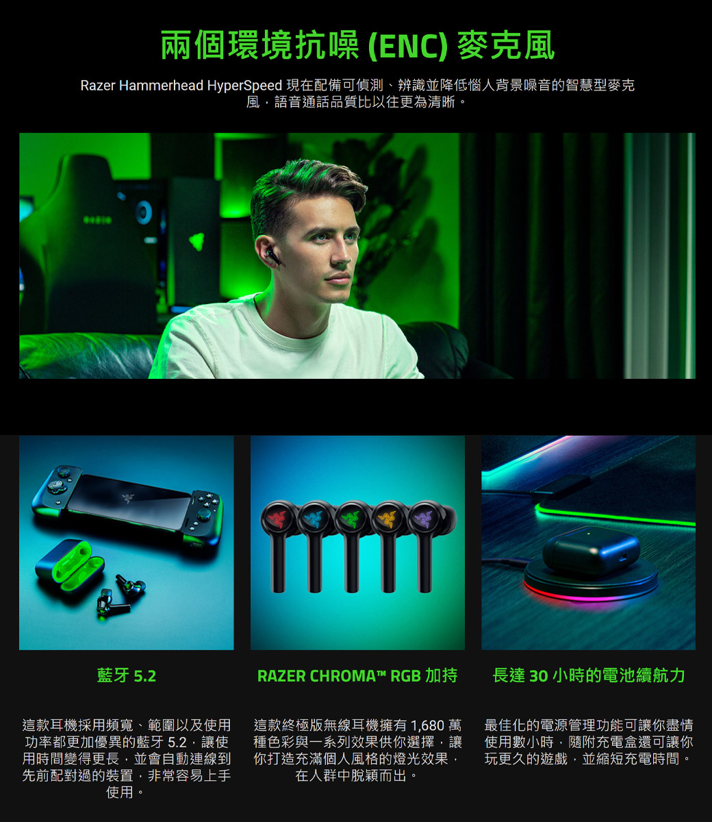 • Razer Hammerhead HyperSpeed 真無線電競耳機