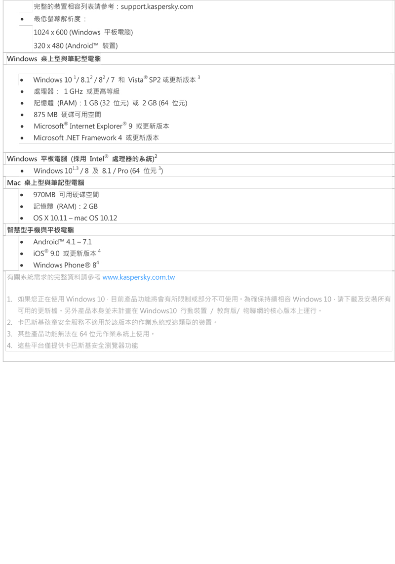 • 卡巴斯基KIS 安全軟體2018