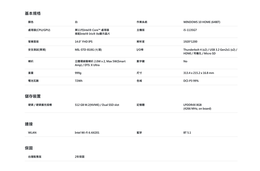 LG Gram 14Z90P-G.AR54C2 白 (i5-1135G7/8G/512G/Win10) 16:10大