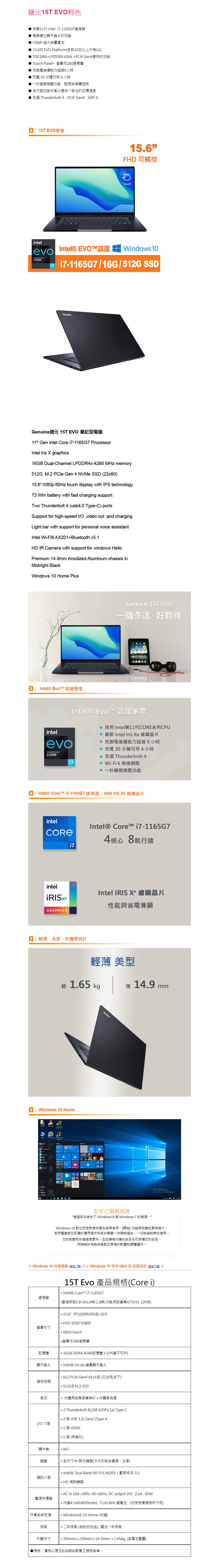 捷元15T EVO-J0046116(i7-1165G7/16G/512GB/Win10/觸控)