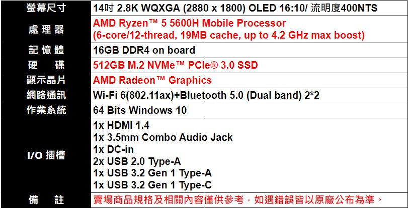 華碩 M3401QA-0118S5600H(酷玩銀)(R5-5600H/16G/512G/AMD Radeon/OLED)