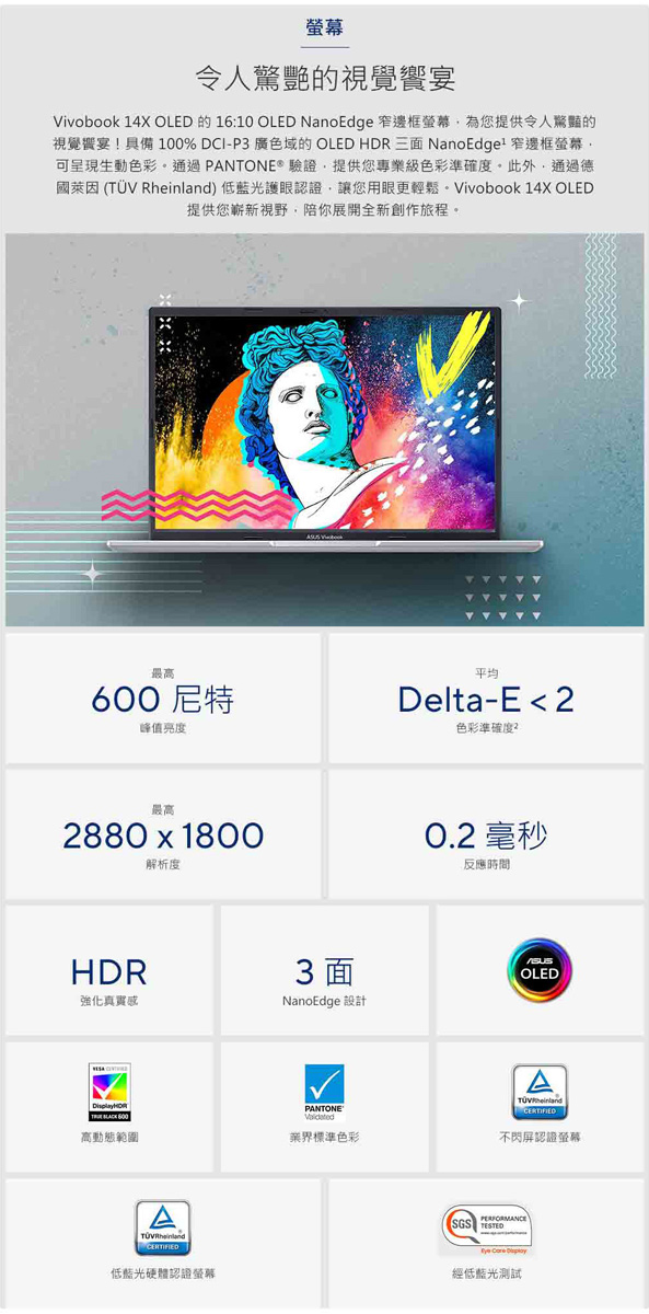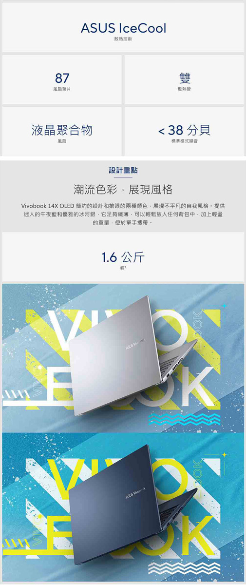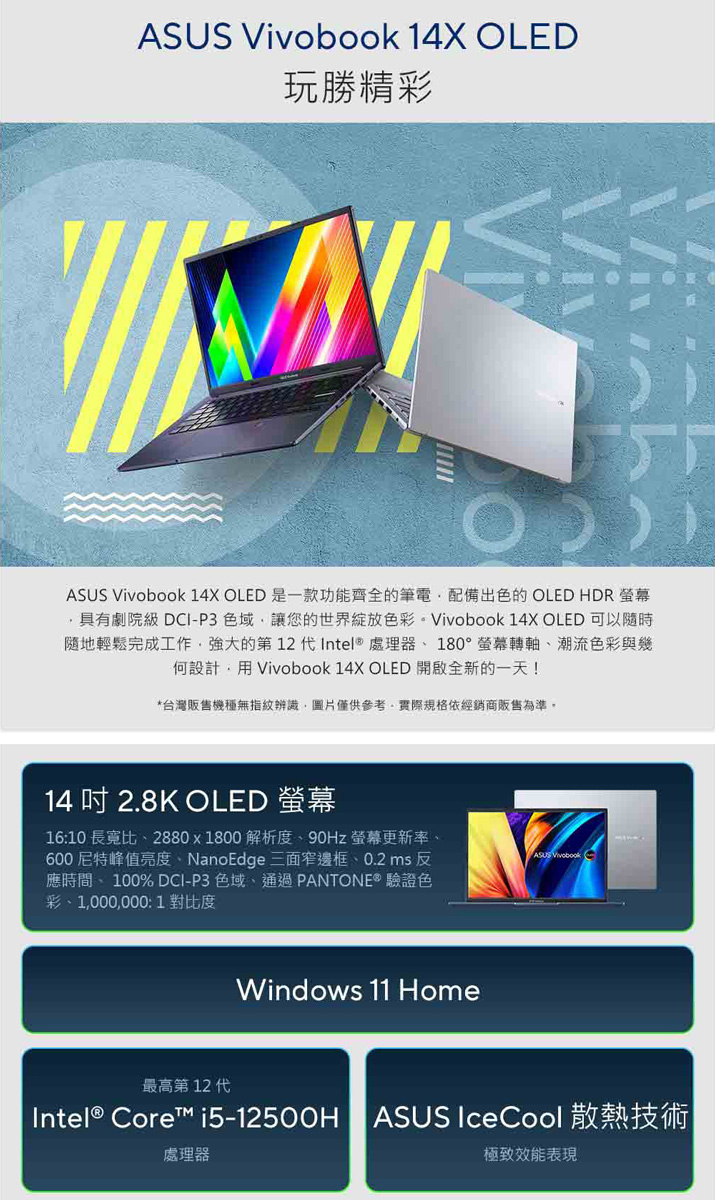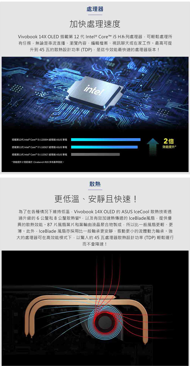 華碩 X1403ZA-0161B12500H(午夜藍)(i5-12500H/8G/512G/Intel Iris Xe/2K/OLED)