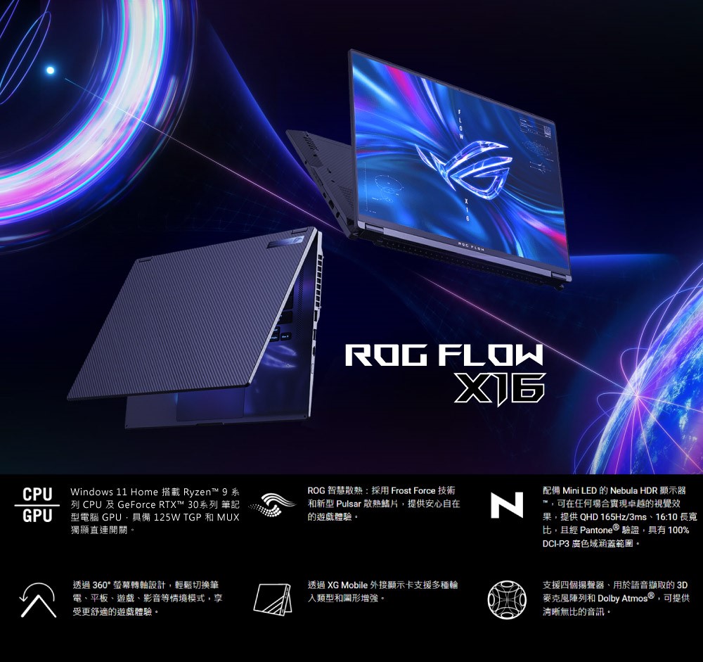 華碩 ROG Flow X16 GV601RM-0042E6900HS(黑)(R9-6900HS/16G/1T/RTX3060)觸控