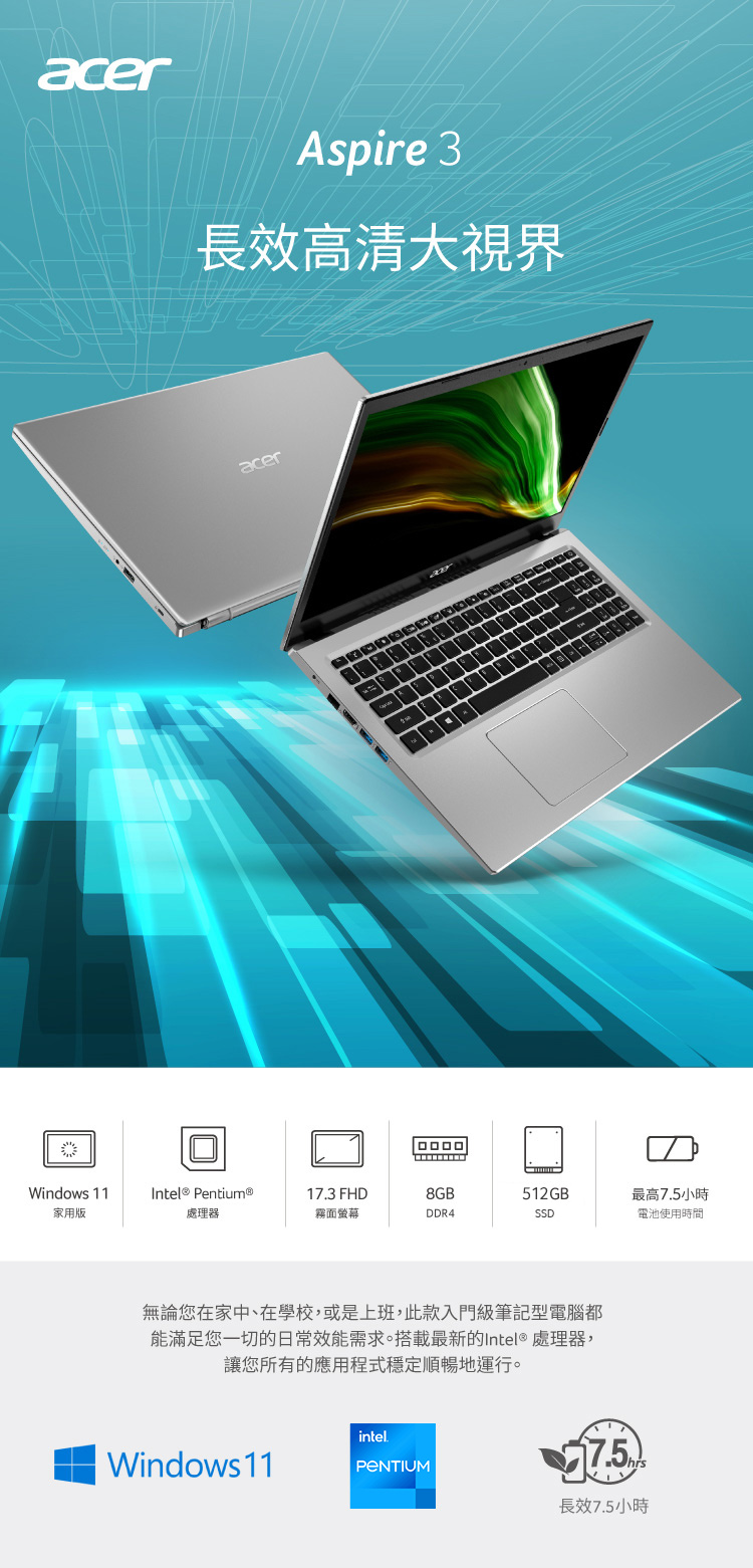 Acer A317-33-P8YJ〈銀〉Pentium N6000/8G/512G/UHD