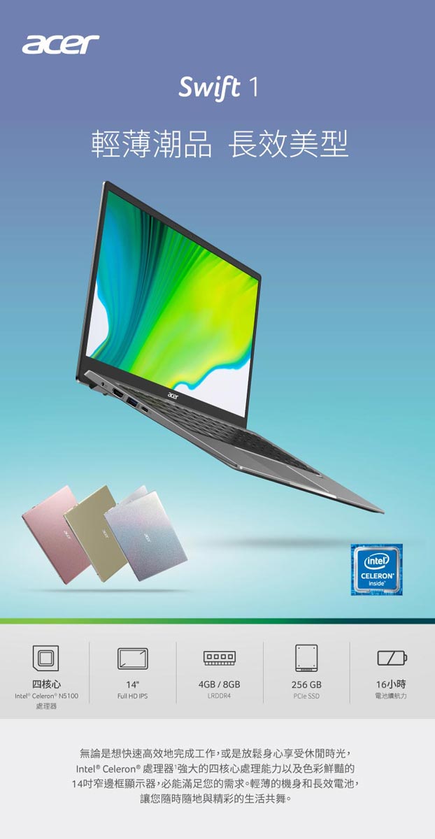 Acer SF114-34-C9V9【彩虹銀】Celeron CN5100/4G/256G/Win10