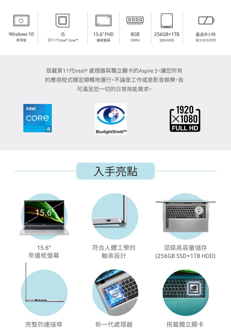 Acer A315-58-59QH〈銀〉i5-1135G7/8G/512G/Iris Xe