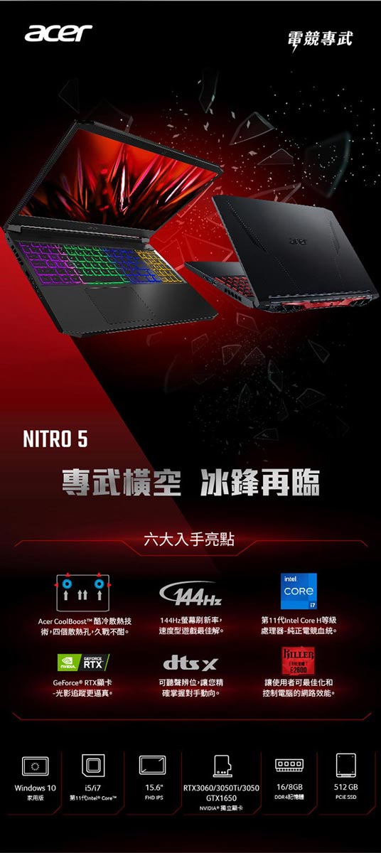 Acer AN515-57-70G6【黑】i7-11800H/16G/512G/RTX3050Ti-4G/IPS/