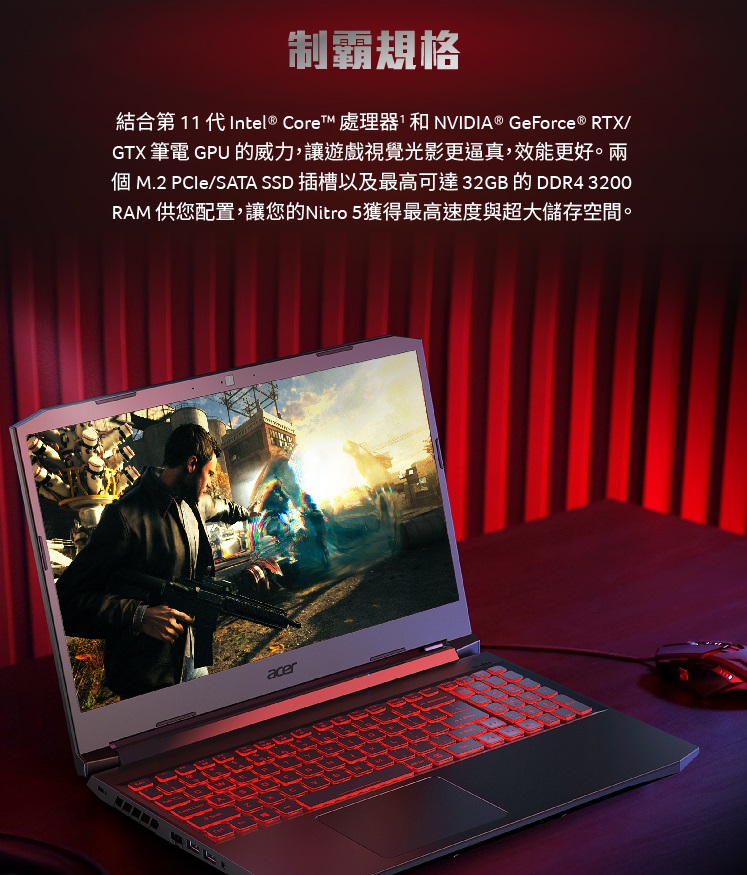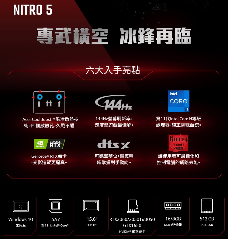 Acer AN515-57-710X〈黑〉i7-11800H/16G/512G/RTX3050Ti-4G【144