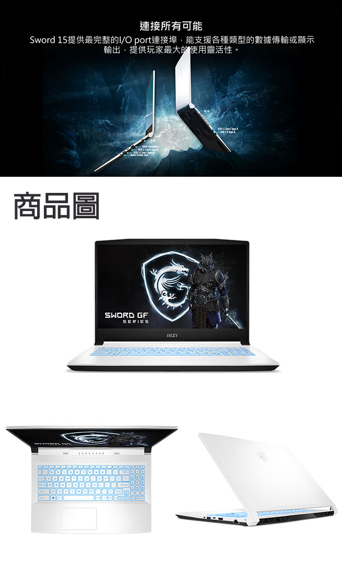 MSI Sword 15 A12UE[1083TW] i5-12500H/16G/512G/RTX3060/144Hz(白)