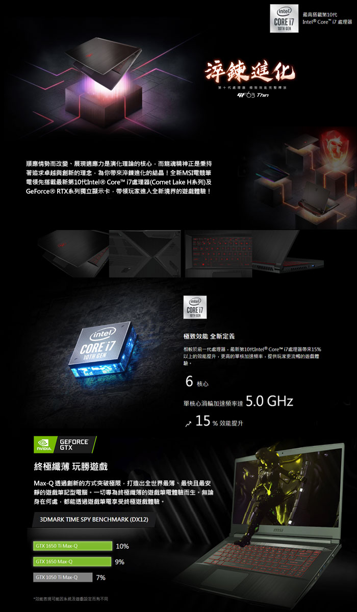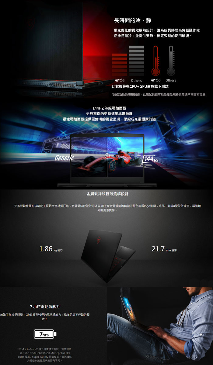 MSI GF63 10SC[841TW]i7-10750H/8G/512G/GTX1650-4G/144Hz 無包鼠