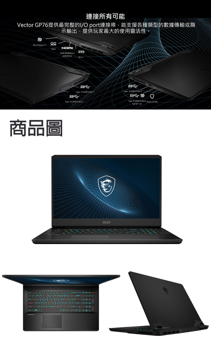 MSI GP76 12UGS[458TW] i7-12700H/16G/1T SSD/RTX3070Ti-8G/360Hz