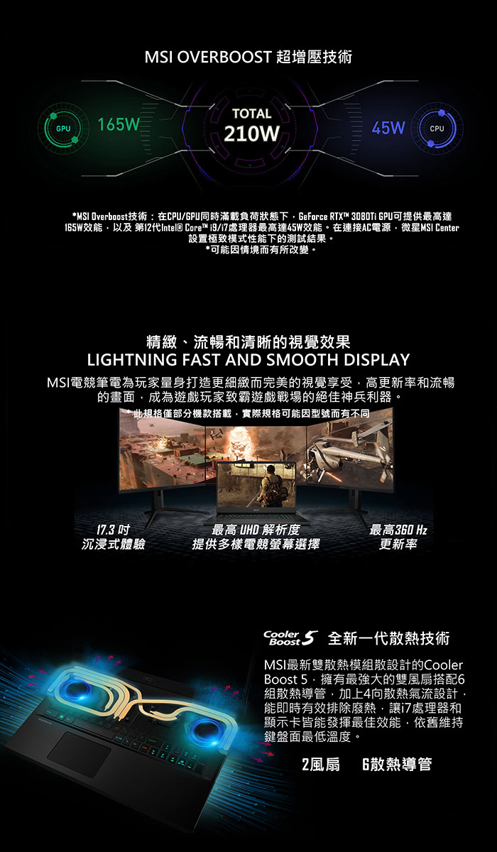 MSI GP76 12UH[040TW] i7-12700H/32G/1T SSD/RTX3080-8G/360Hz