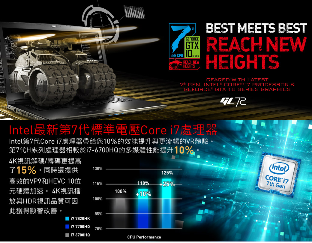 MSI 微星GL72 7RD-099TW(i5-7300HQ/4G/1TB/GTX1050/Win10)