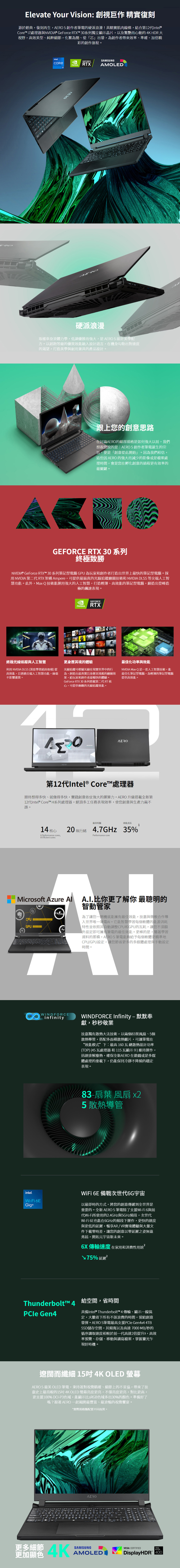 技嘉 AERO 5 XE4-73TW614SO(黑)(i7-12700H/16G/1T/3070Ti/4K/OLED) 內建M365
