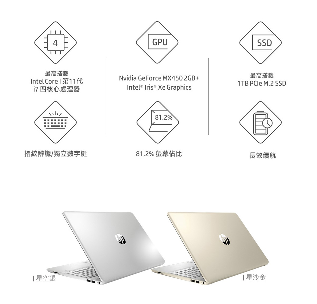 HP 超品 15s-du3010TX(星空銀) i7-1165G7/16G/1T SSD/MX450 2G