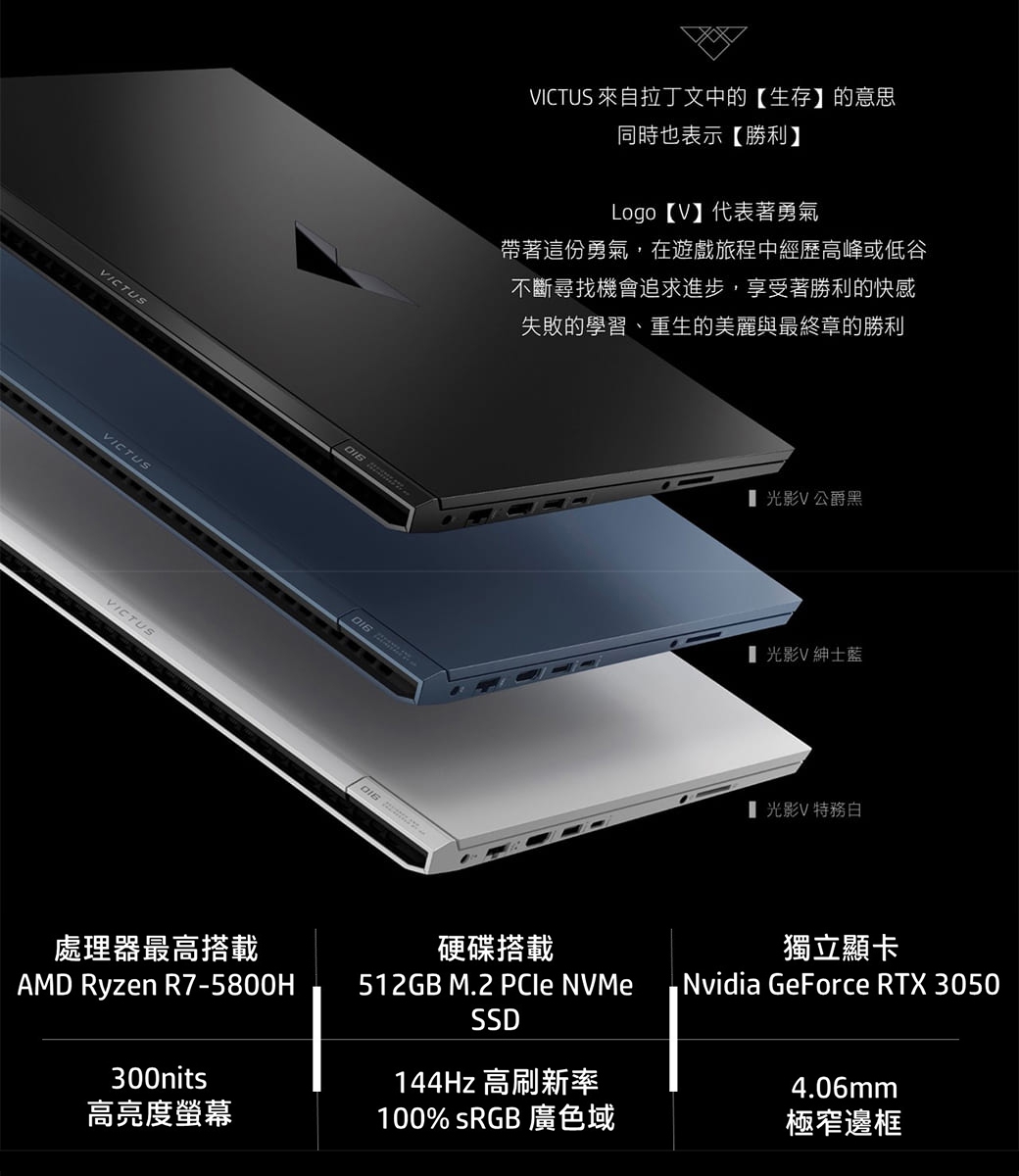 HP 光影V Victus 16-e0774AX(特務白) R5-5600H/8G/512G/3050 4G/