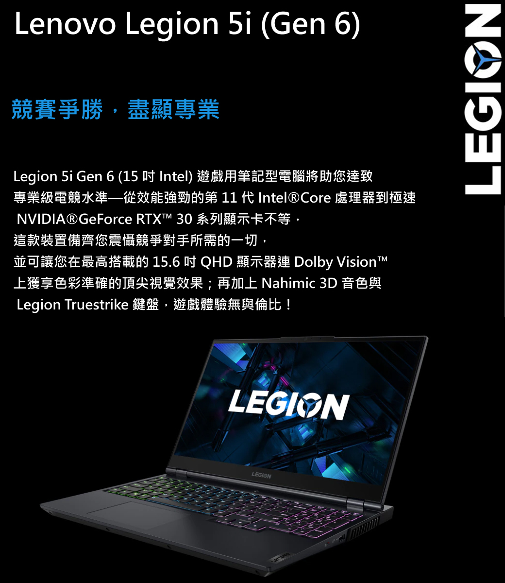 • Lenovo Legion 5 15ITH6(82JK001BTW)(暗夜藍)