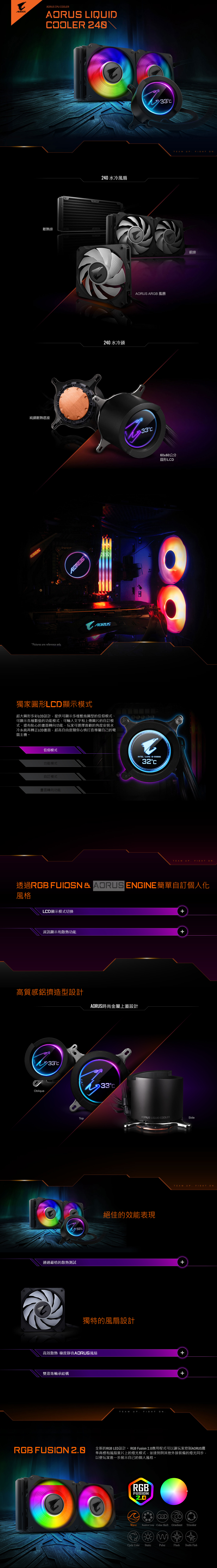 技嘉 AORUS LIQUID 240 鷹神水冷 /LCD冷頭顯示/3年