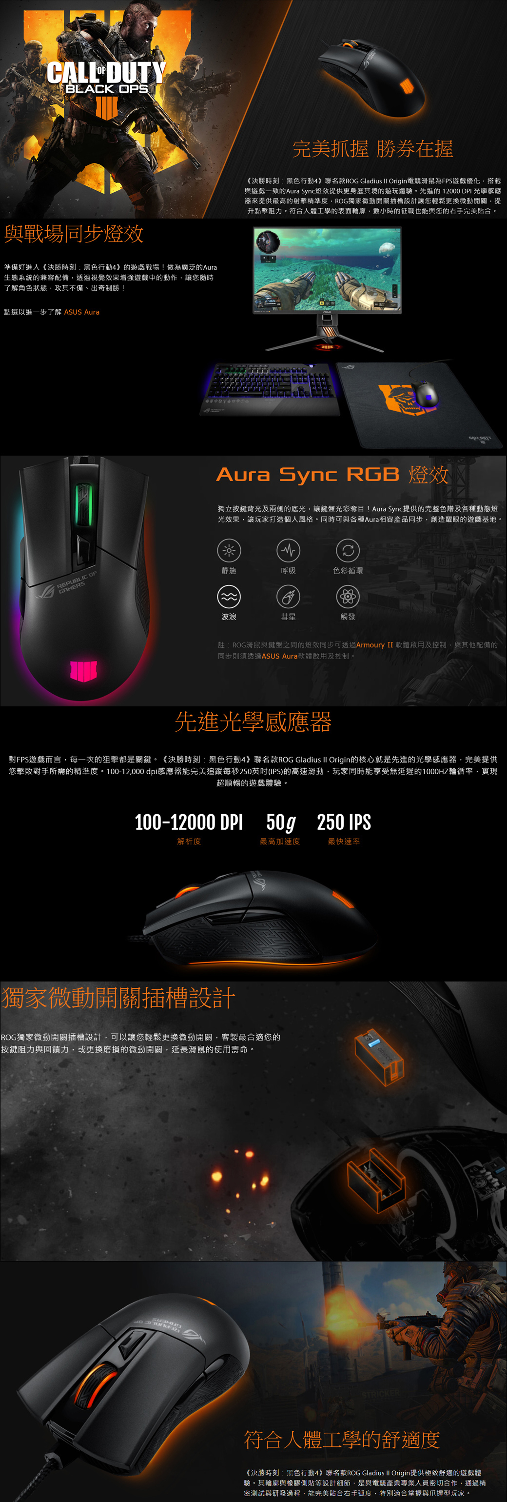 • 華碩 ROG Gladius II ORIGIN COD 電競滑鼠