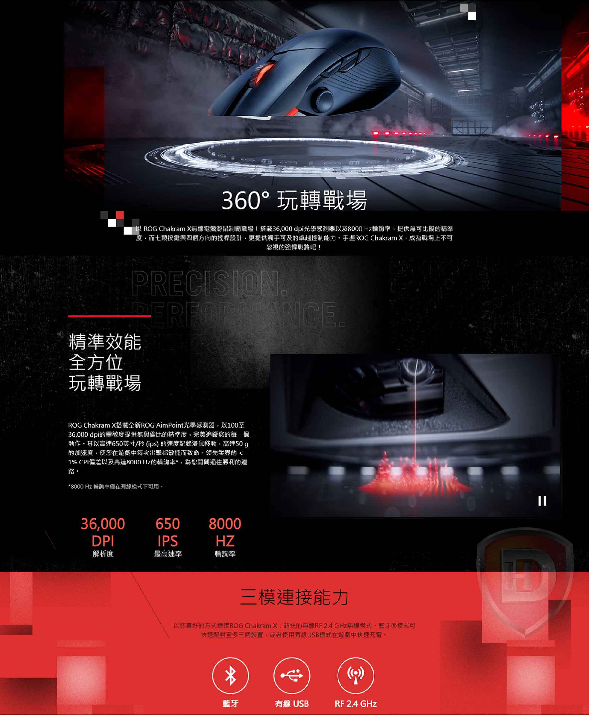 • 華碩 ROG Chakram X 電競滑鼠/無線/36000Dpi/Aura Sync Rgb
