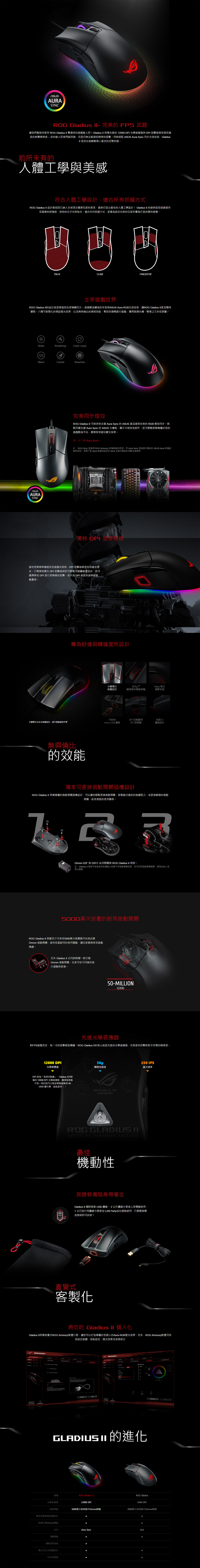 華碩 ROG Gladius II 神鬼戰士 電競滑鼠/有線/12000dpi /微動可換/RGB