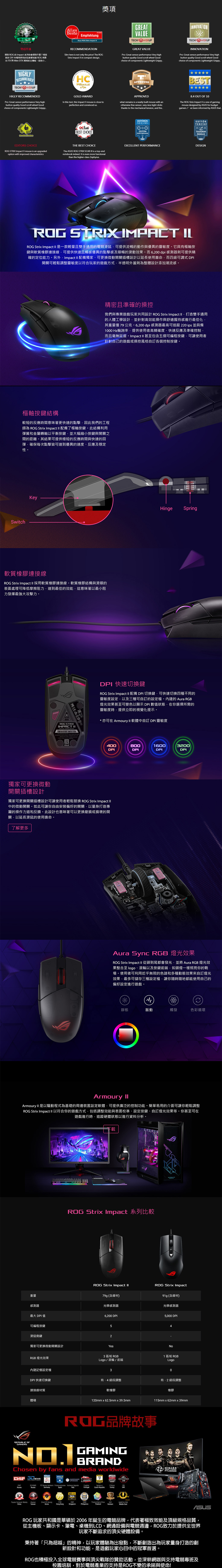 • 華碩 ROG STRIX IMPACT II 電競光學滑鼠