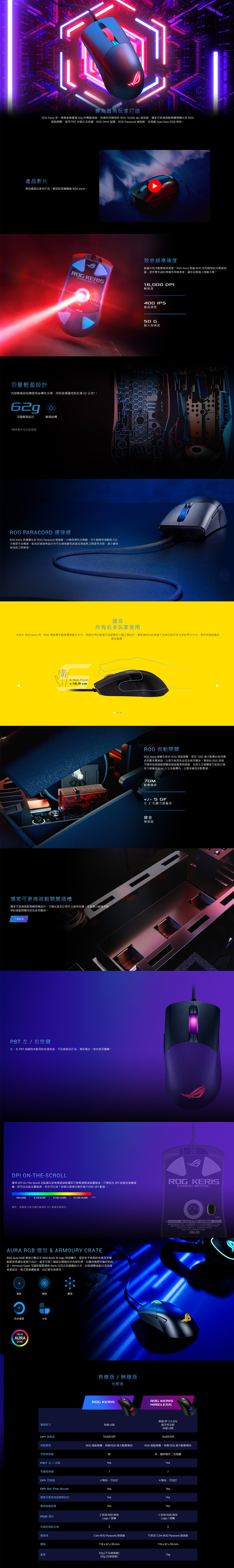 華碩 ROG Keris 電競滑鼠/有線/自有微動開關/16000Dpi/Pbt塗層/輕量化65g