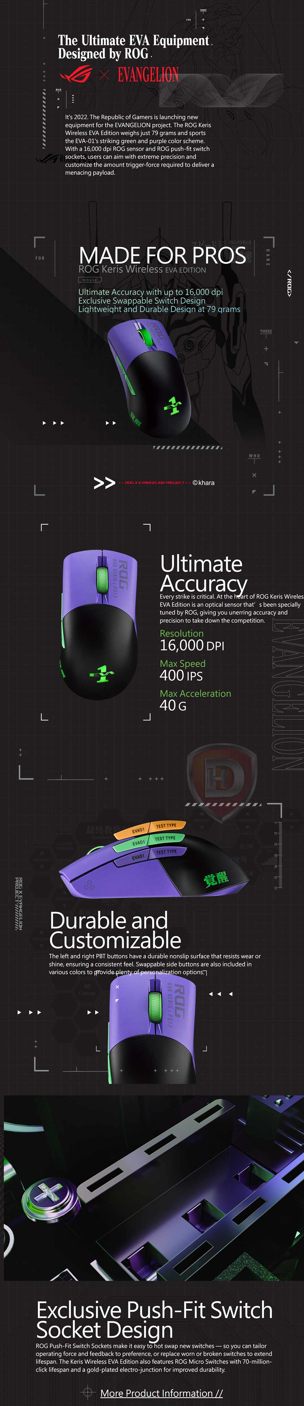 1 x ROG Optical Gaming Wireless Mouse 1 x Quick Start Guide 2 x swappable side buttons (different colors) 4 x mouse feet 2 x Omron 1M micro switch 1 x ROG Paracord 1 x ROG sticker 1 x Warranty Card