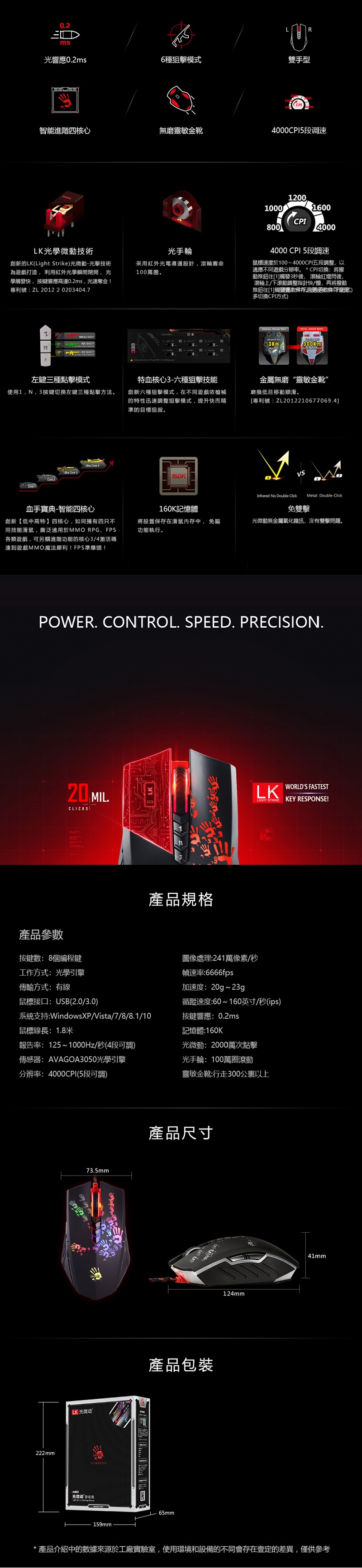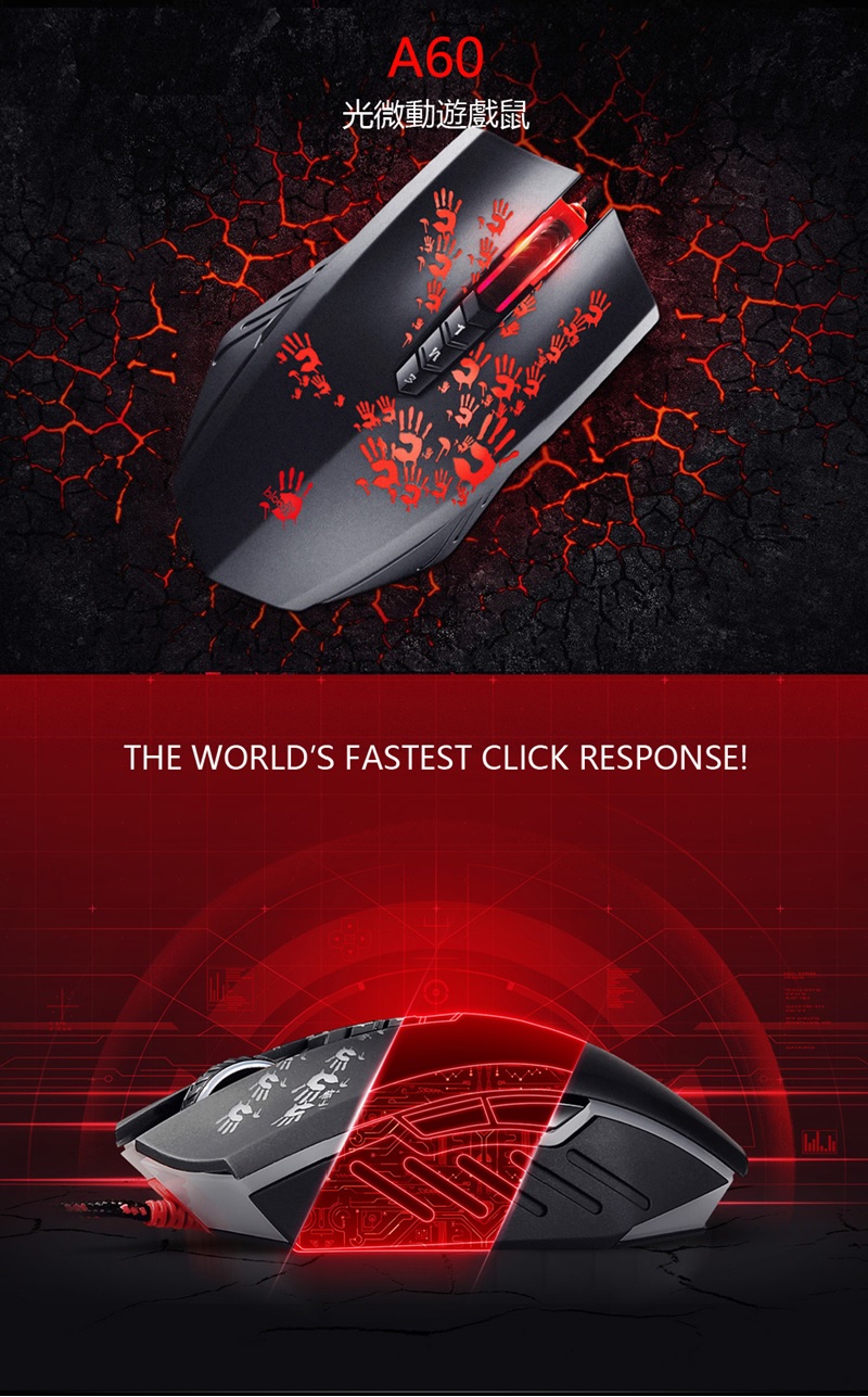雙飛燕 A4 BLOODY A60光微動遊戲鼠/有線/4000dpi
