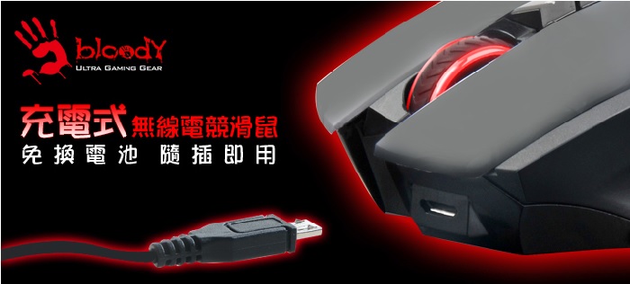 【A4 Bloody】光微動鋰充電式無線金靴電競滑鼠 R80 (未激活)-贈激活卡+金靴