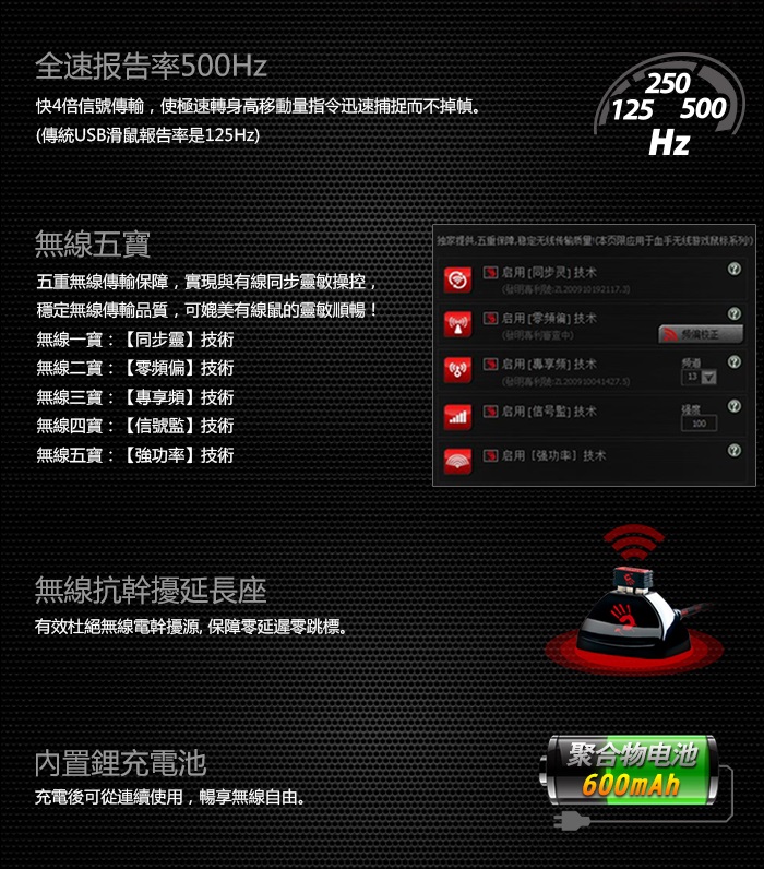 報告率:125~500Hz/秒(3段可調)