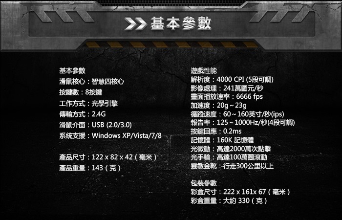 滑鼠介面:USB(2.0/3.0)