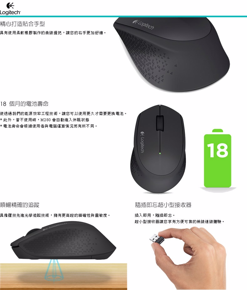 • 羅技 M280 無線光學滑鼠(黑)