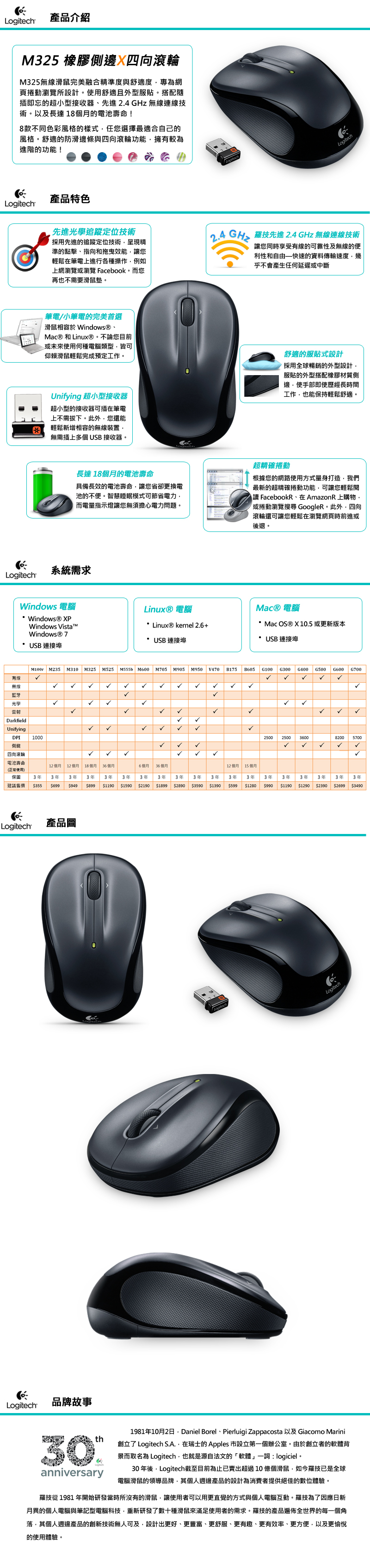 • 羅技 M325 無線光學滑鼠(藍)