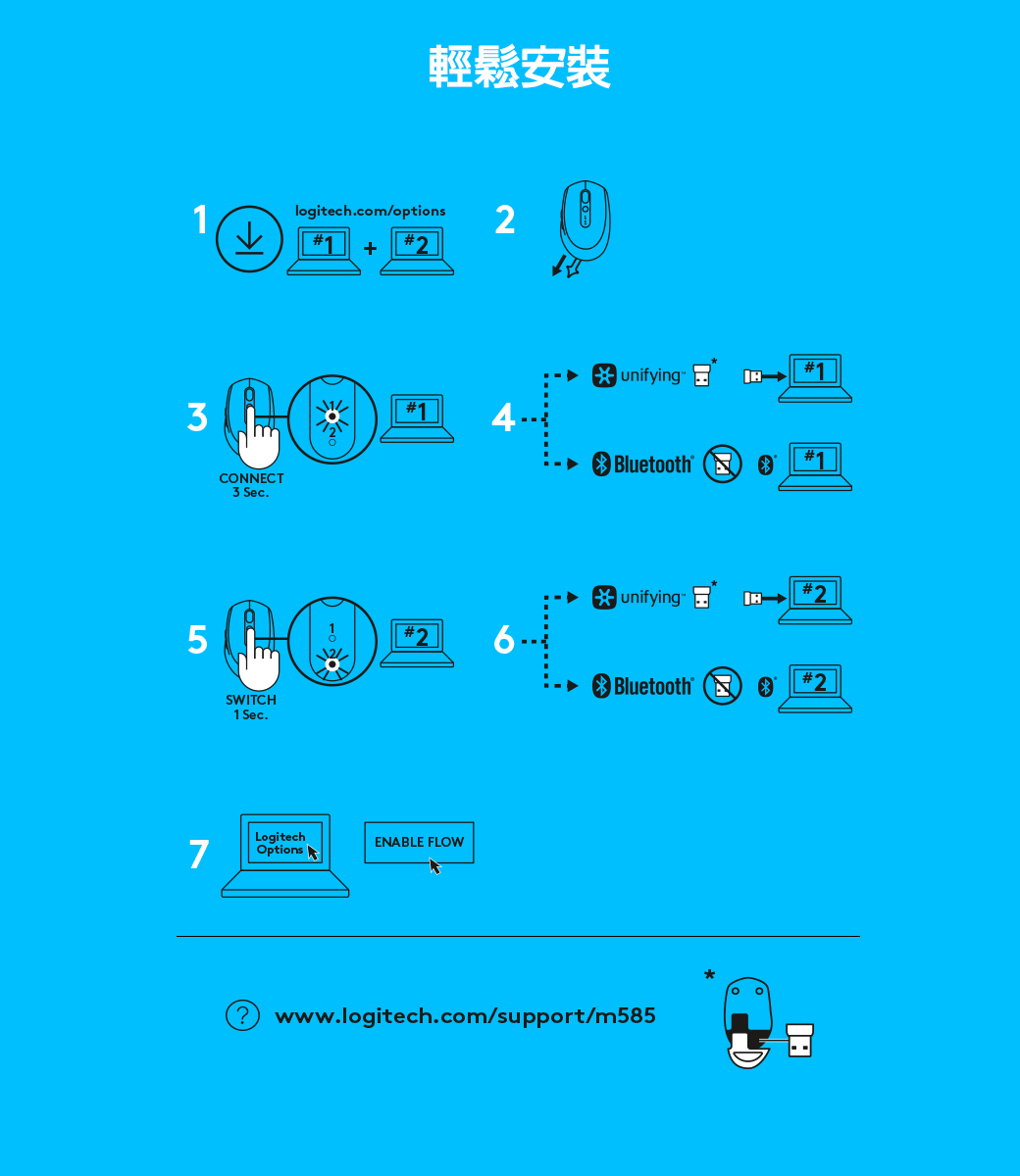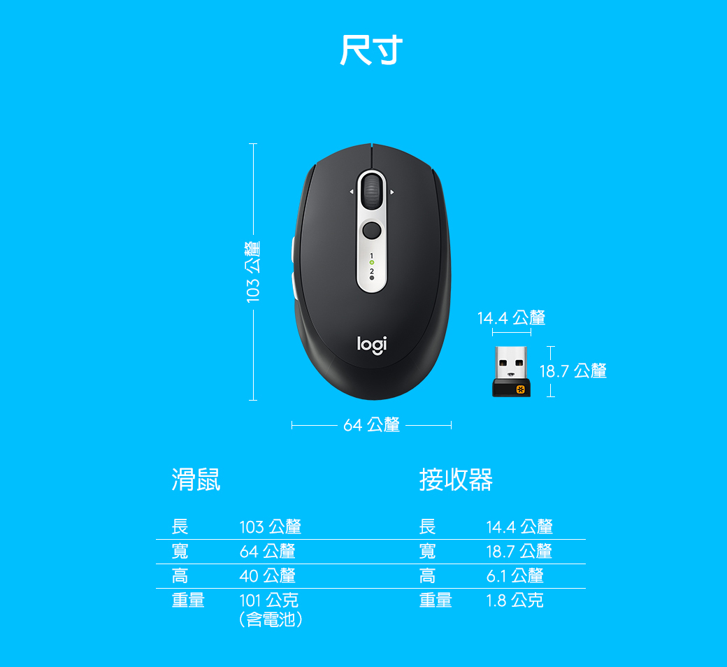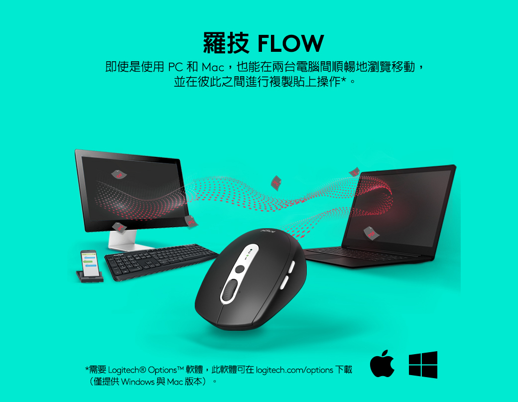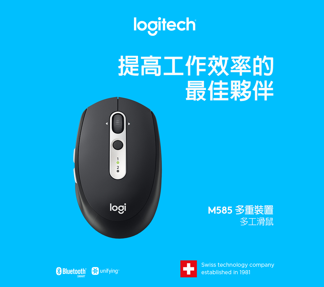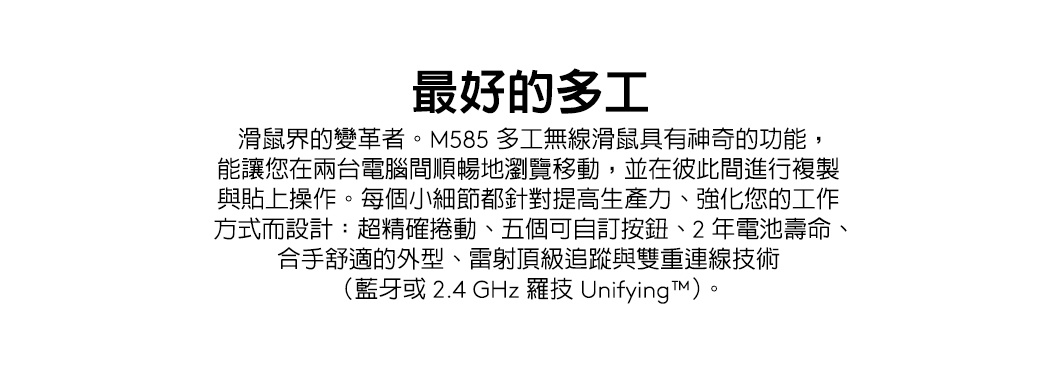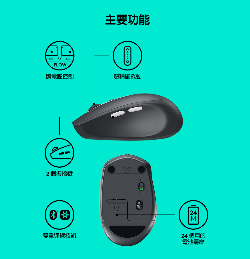 羅技 M585 無線藍牙光學滑鼠(黑)/無線/1000dpi/Unifying/羅技FLOW跨電腦使用