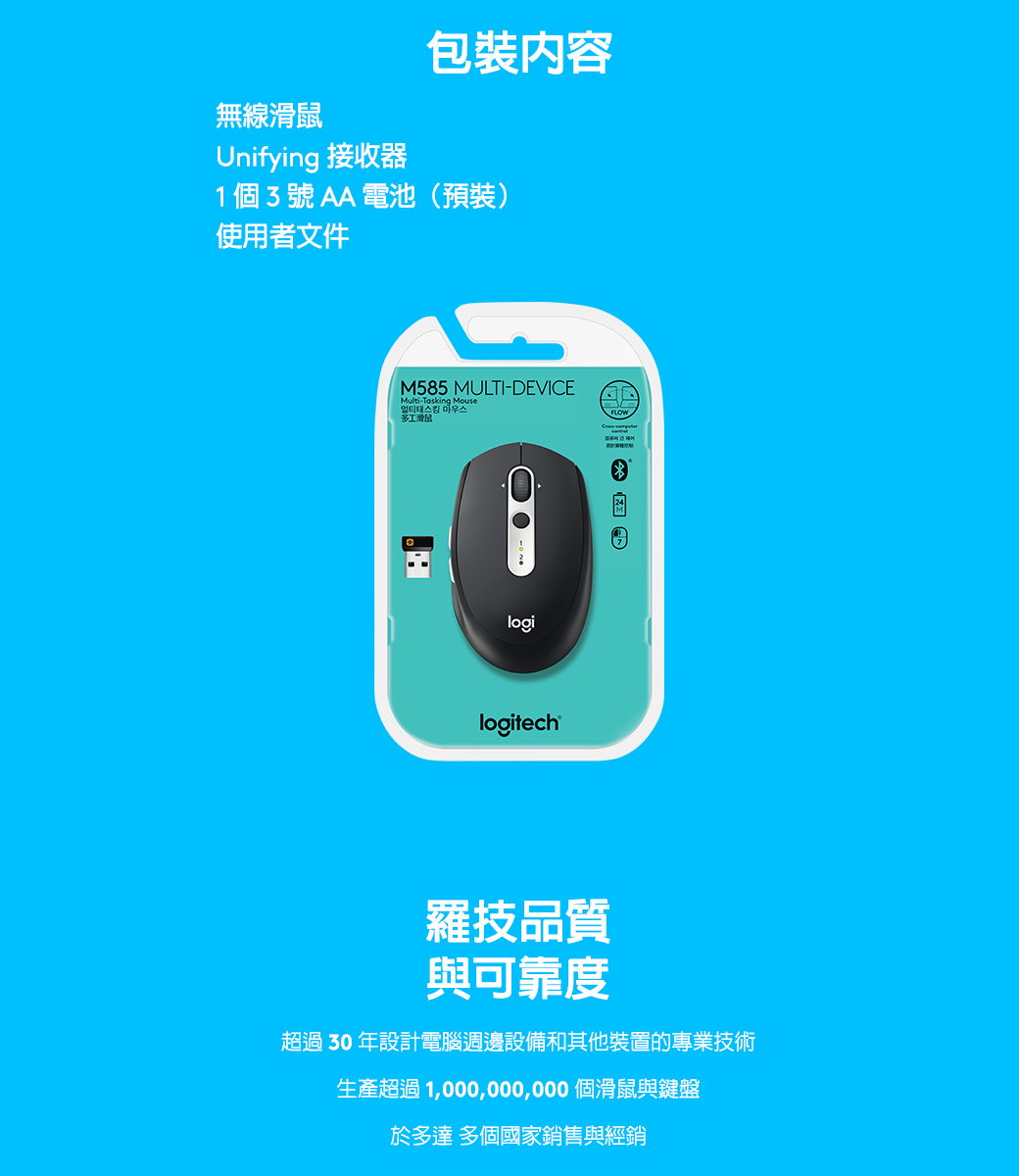 • 羅技 M585 無線藍牙光學滑鼠(黑)