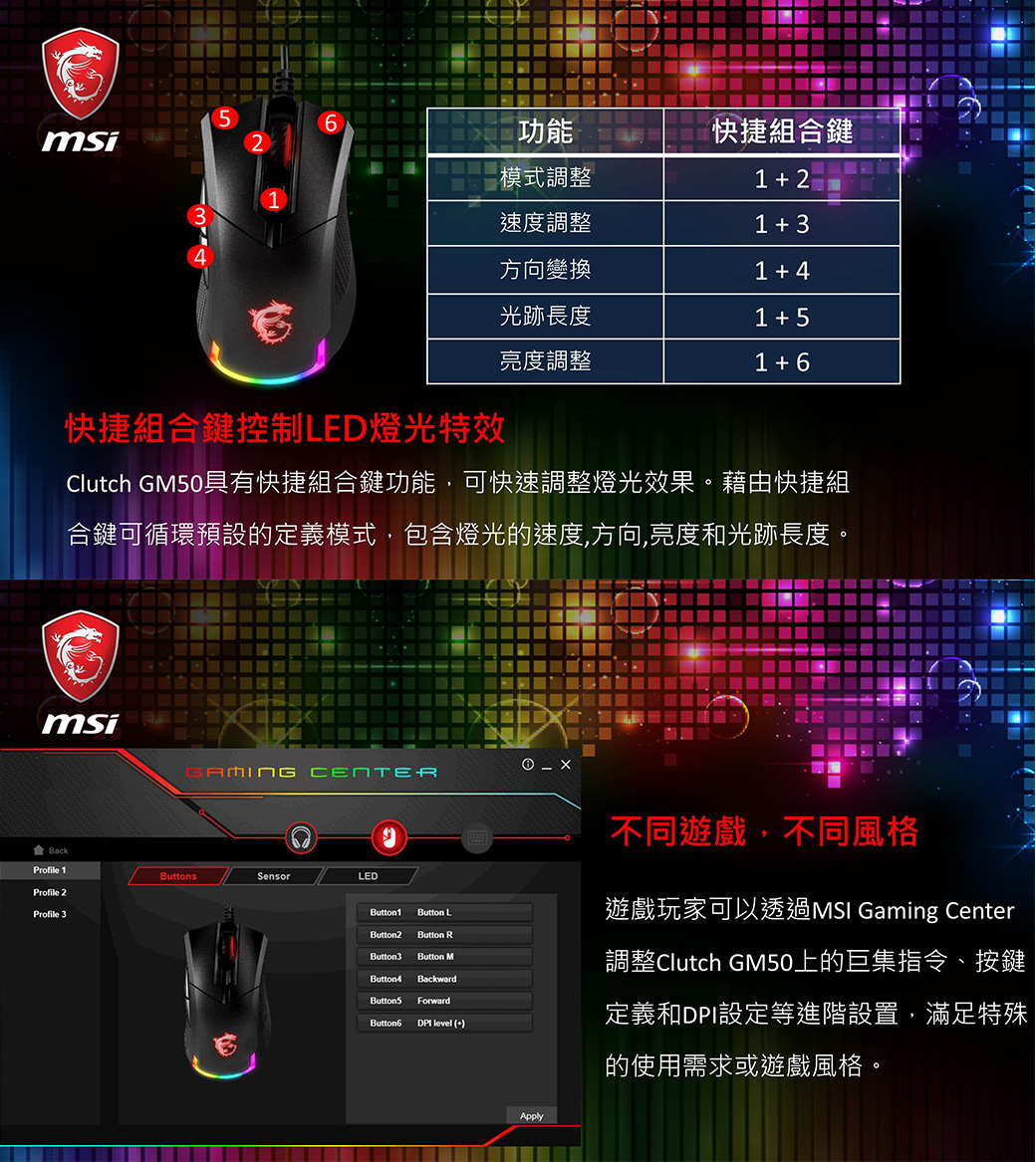 • MSI微星 GM50輕量化RGB電競滑鼠